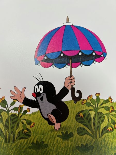 Als der kleine Maulwurf einen Regenschirm findet und ihn kurzerhand repariert, merkt er schnell, dass man damit auch herrlich durch die Lüfte segeln, den Fluss entlangschippern und sogar den wilden Hund austricksen kann. Am besten mit allen Freunden gemeinsam.