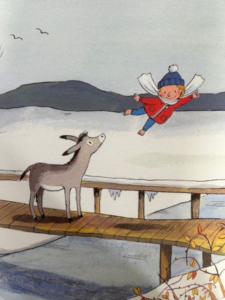 Immer wenn das Eselchen nicht schlafen konnte, erzählte ihm seine Mutter die Geschichte vom Jesuskind in der Krippe, das von Ochs und Esel gewärmt wurde. Doch eines Morgens ist die Mutter verschwunden. Ein kleiner Engel weiß wo sie ist: im Stall von Bethlehem!